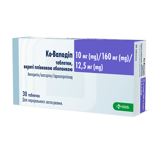Ко-Валодіп, 10мг+160мг+25мг таблетки, покриті плівковою оболонкою